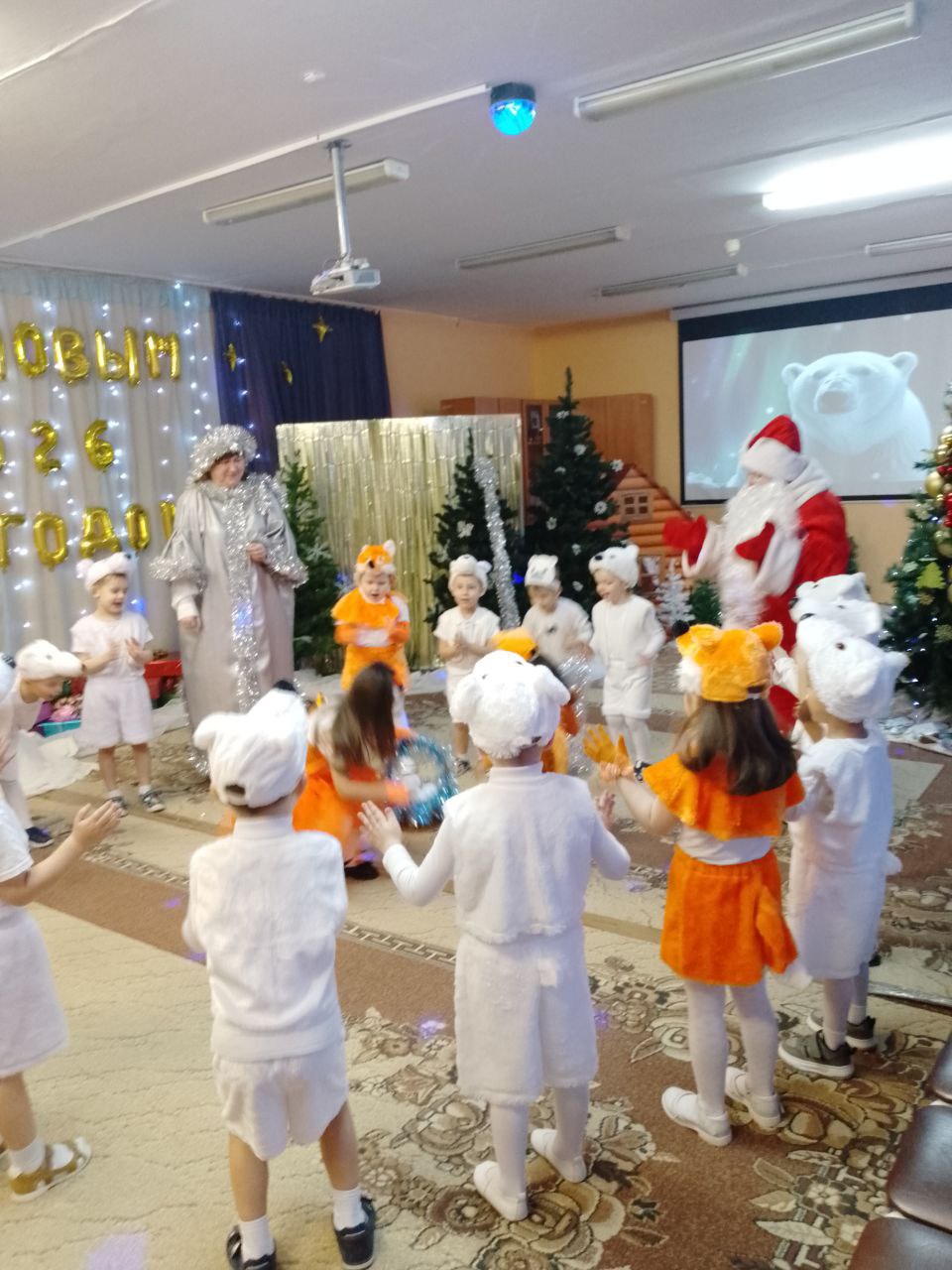 В финале утренника, благодаря дружбе и взаимопомощи, белый медвежонок, конечно же, нашёл свою маму! А Дедушка Мороз вручил всем детям долгожданные новогодние подарки.