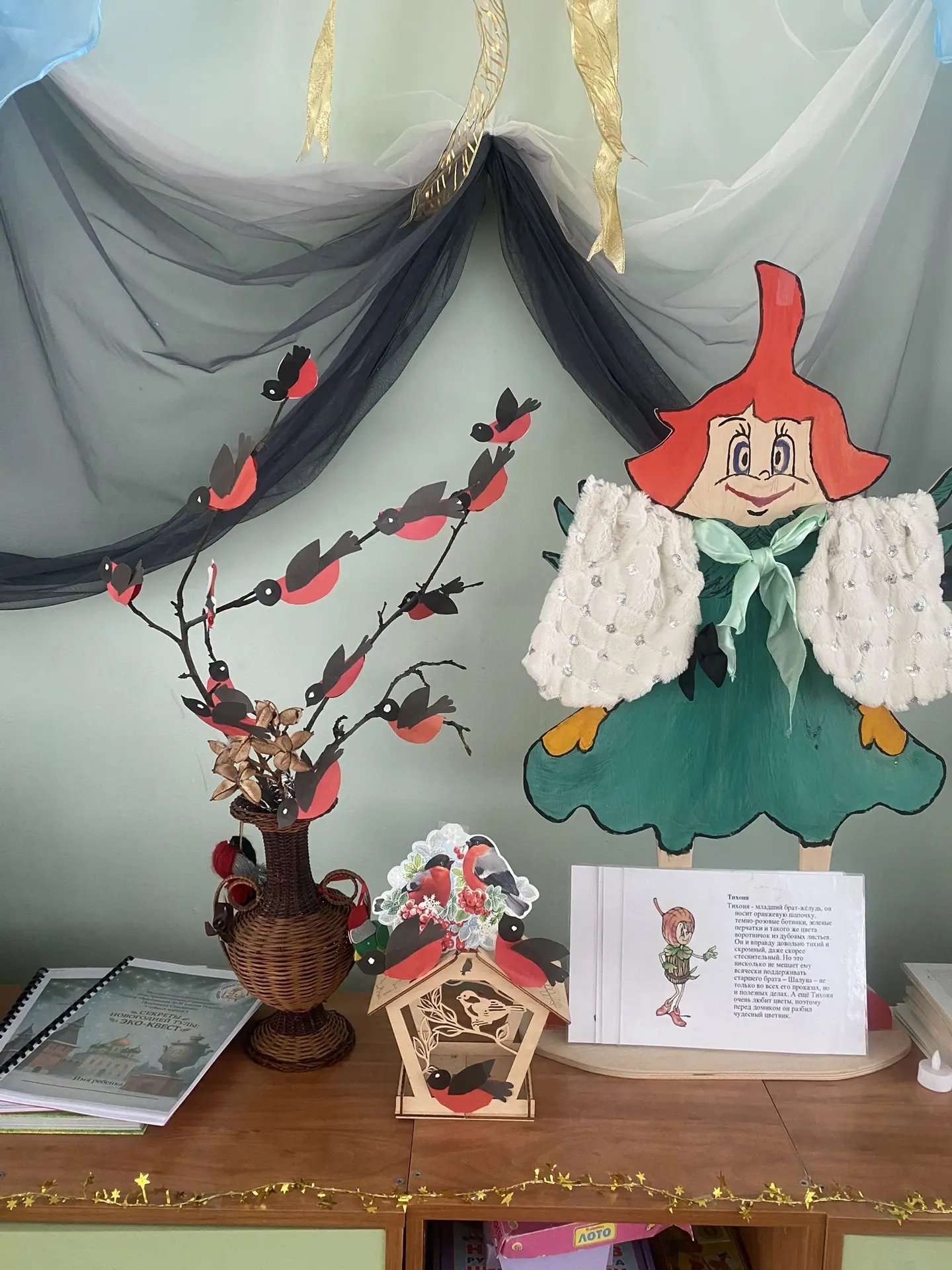 Завершающим этапом стала творческая работа по украшению веточек дерева самодельными снегирями. Маленькие мастера с любовью вырезали и клеили детали, создавая красочные фигурки птиц. Эти веточки стали настоящим украшением группы, напоминая о важности заботы о природе.